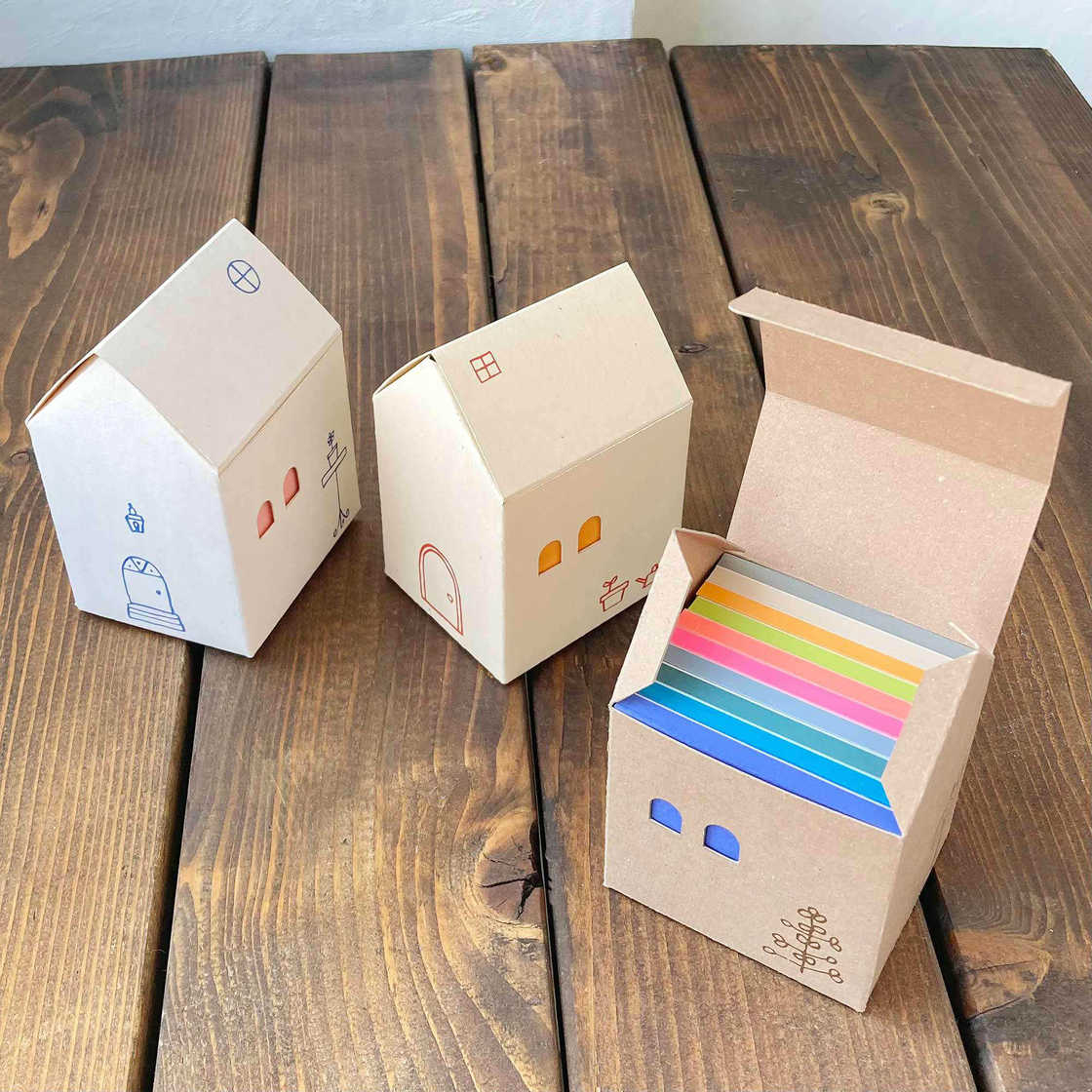 ③切り取った10個のミニブロックメモを「おうちばこ」に入れて完成。