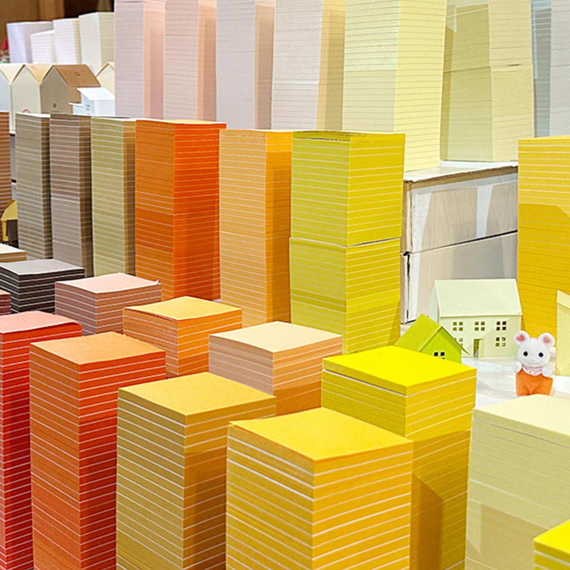 Pick your favorite shades from the towering stack of 200 colors — the TANT Tower — and cut out your own mini block memos.